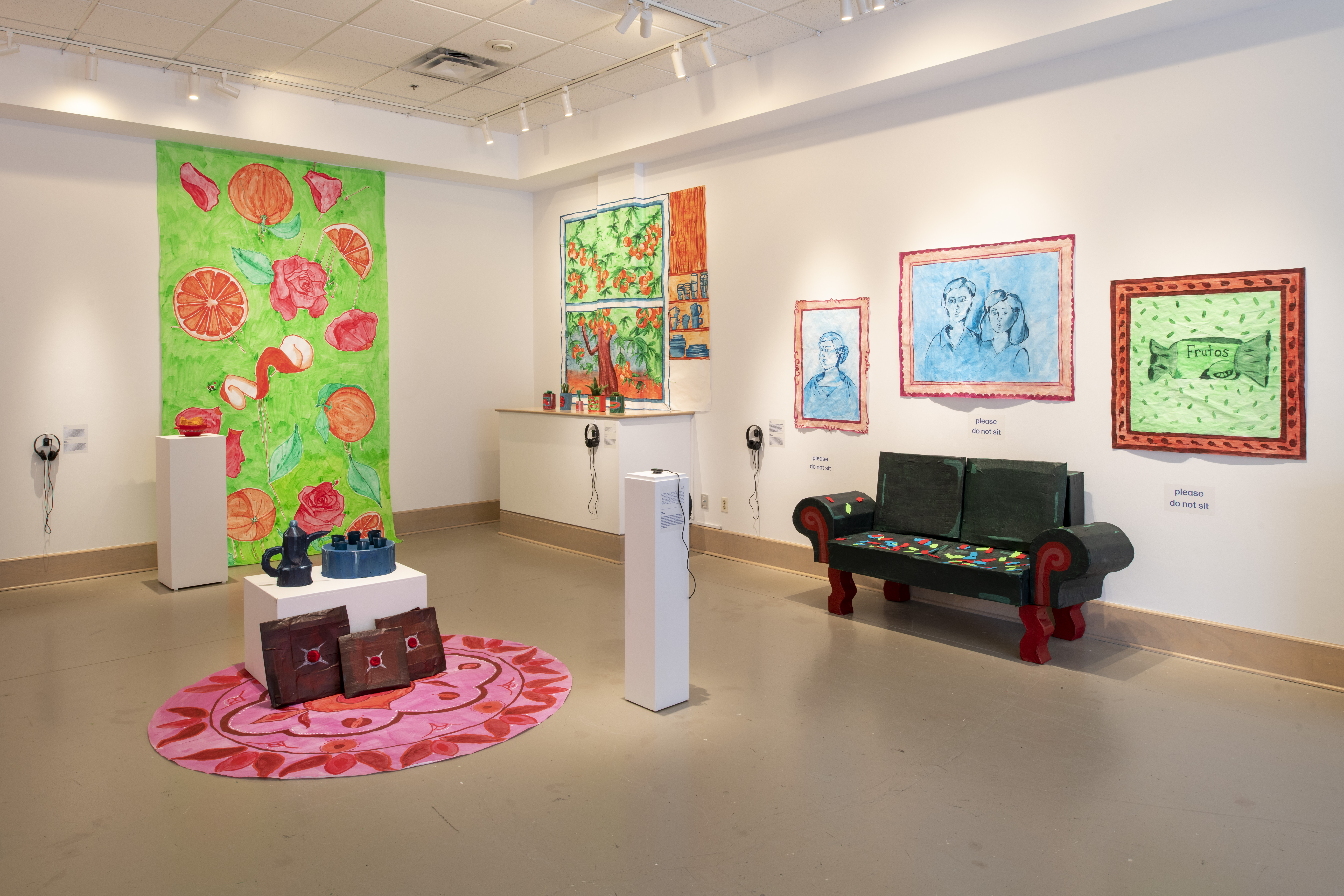 Alongside denirée isabel as our collaborative duo “comadres”, we created a large scale on-site installation in response to the stories of ten newcomers to Halifax, Nova Scotia for the exhibition at the Mary E Black Gallery. The works created were made using felting, paper maché and ceramic handbuilding, as well as, mural-style painted wallpaper to create ten distinct vignettes of each individual participant, which accompanied their audio recordings.